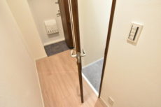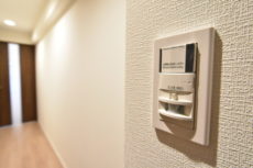 玄関ドア横にはモニター付きインターホンが設置されていて、お部屋の中から訪問者を確認する事が出来ます。映像を見てから応対するかを決められるので安心ですね。しつこいセールスも事前に回避!