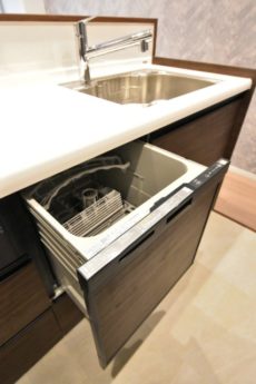 調理台の下には食器洗浄乾燥機とスライドキャビネット。食洗機付なんですね!!これからの手荒れの季節に食器洗いから解放されるなんて夢のよう。余った時間でゆっくりコーヒーを淹れたり…と妄想が広がります(*´▽`*)引き出しタイプのスライドキャビネットは出し入れがし易く、たくさん詰めても中が確認がしやすい優れものです。
