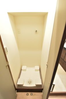 洗面室は入口はいって右手に洗面化粧台と洗濯機置き場、正面に
