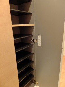 奥に棚が付いているので、綺麗に収納できますね~☆扉付なので目隠しもできていいですね(*^^)v