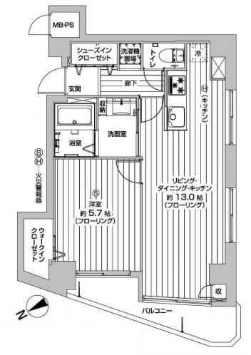 広さは5.59㎡、北西向き。 時刻がお昼前なので陽ざしがありませんが、午後になれば西日が期待できるかも・・・。