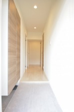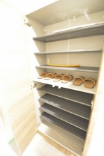 白基調の明るい印象の玄関ホール。 十分な大きさのシューズBOXと収納もあります。