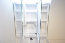 洗面台の3面鏡の裏は収納に。