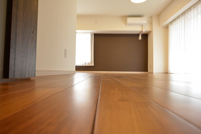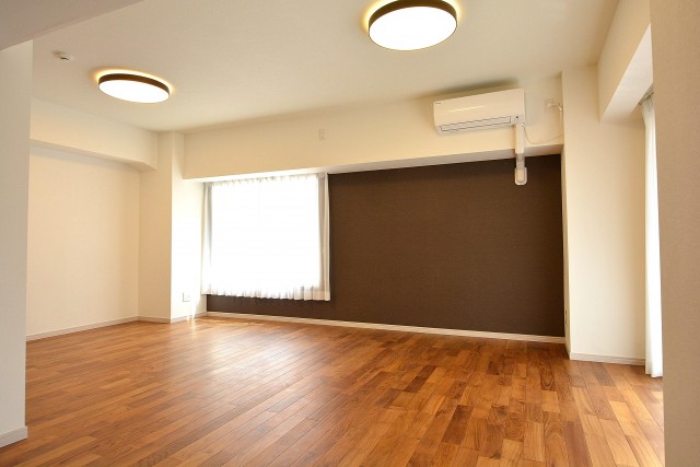 LDKは約20.1帖。フローリングは天然無垢のチーク材が使われています。