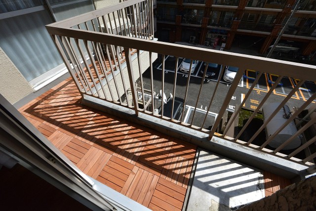 最後にリビング、洋室に面しているL字型のバルコニーに出てみます。