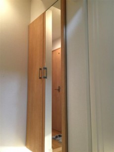 表扉には縦長の鏡がついているのでお出かけ前の身だしなみチェックもサッと済ませられます。