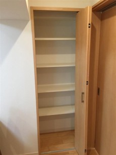 ダイニングキッチンの収納です。普段使いの物などはこちらにすべて収納できそうです♪♪急なお客様の時でも生活感を隠せてgood☆