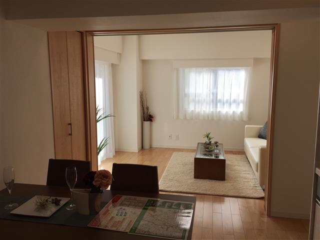 ダイニングキッチンとは、スライド式ドアで隔てられているので、ライフスタイルに合わせて開けて使うこともできますね(*´▽`)リビングダイニングキッチンにしても良いと思います。