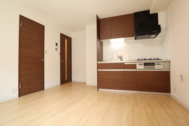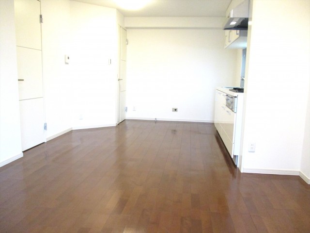 ブラウンのフローリングに白いクロス。シンプルな色使いで家具も合わせやすい印象です。