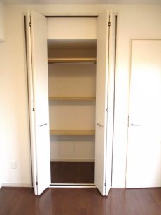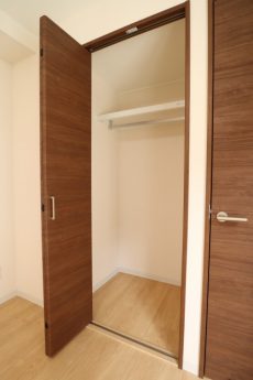 収納は奥行きのあるクローゼット。奥には棚も付いていて収納力は抜群です。