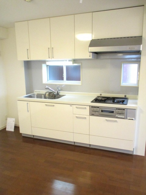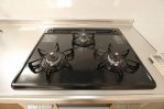コンロは三口。タイマーや温度設定などが可能な高機能なタイプです。ガスコンロって、いつの間にかこんな事が出来るようになっていたんですね^^;