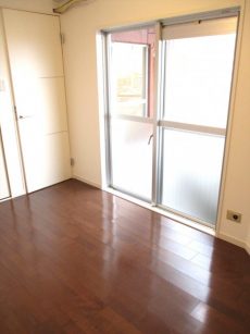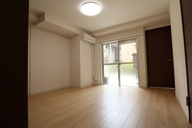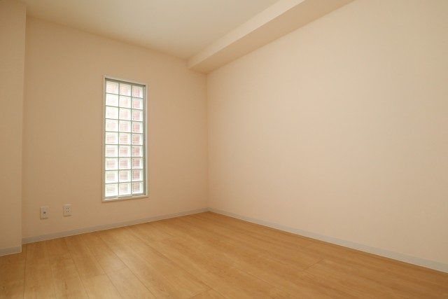 こちらは約6帖の洋室。フローリングやクロスはLDKとお揃いですね。北東側にバルコニーに面した窓がある明るいお部屋です。お部屋の形が真四角ではありませんので家具を置く際はご注意を。ただ、約6帖ありますので余裕はありそうですけどね。