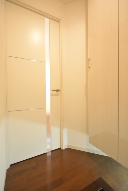 白を基調とした明るい建具に、濃い色の大理石調の玄関、部屋がぼやけず「ビシッ!]としますね☆彡