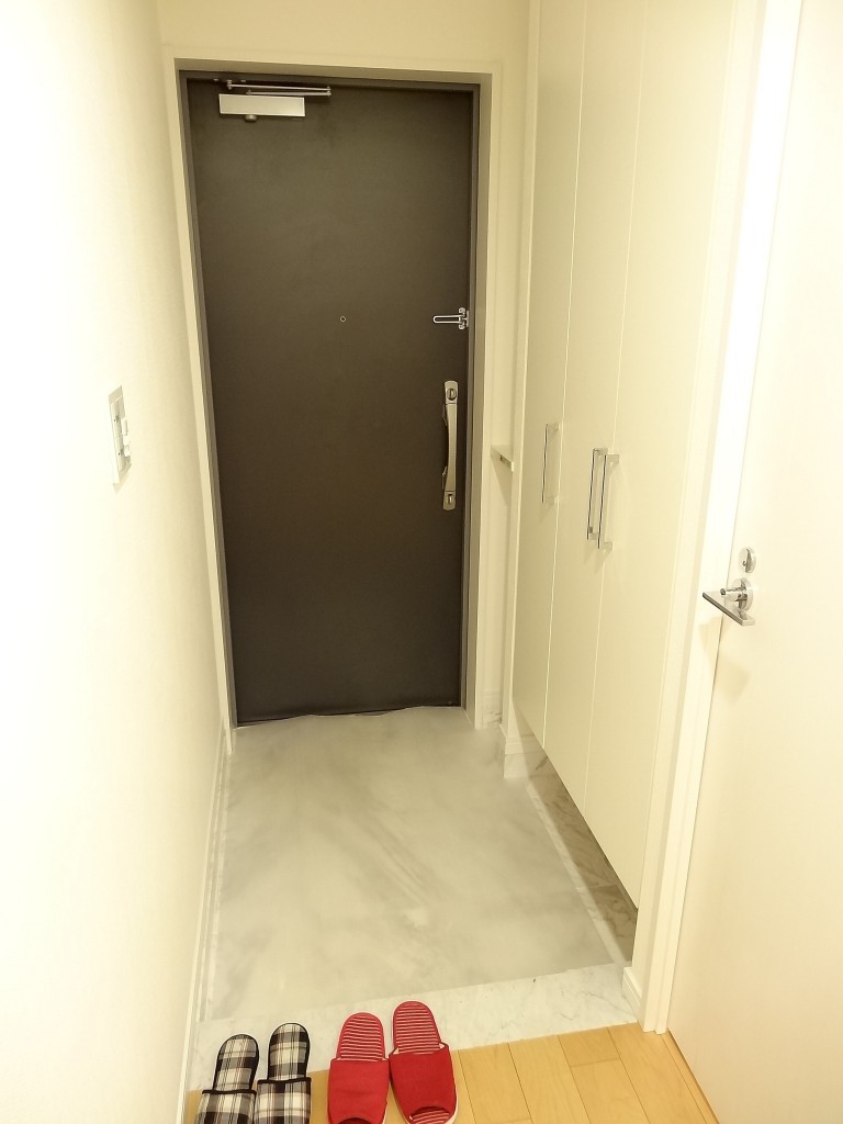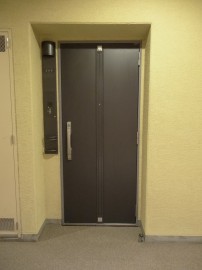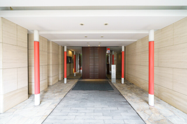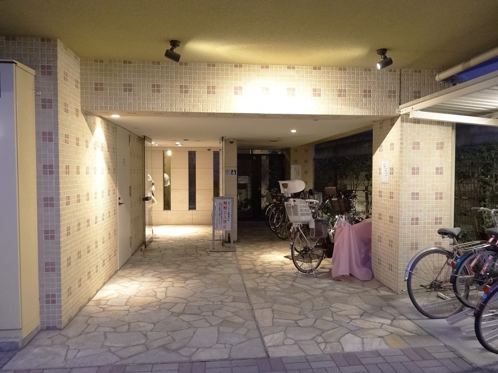 安心のオートロックつき。時刻が夕方なので照明がついていますね、ステキです。