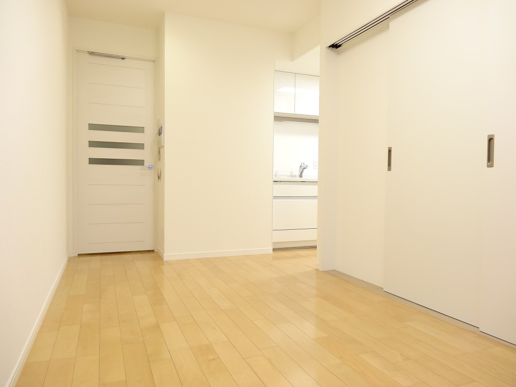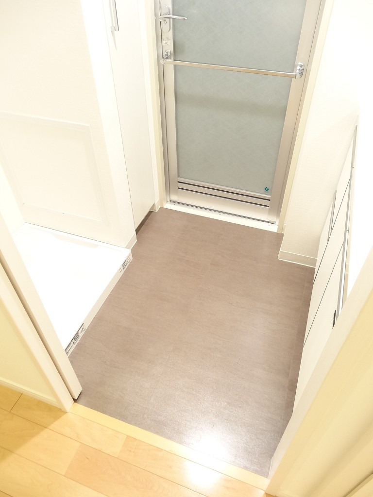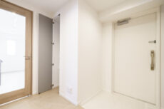 玄関からは細長い廊下ではなく横幅のあるホールに続いています。居室へのドアが正面になく、宅配やフードデリバリーなどの受け取り時に室内が見えづらいのが嬉しいですね。玄関にはシューズボックスインクローゼット!靴が沢山入るのは勿論のこと、キャリーバッグなどの靴以外のものを置いておくことも出来そうです。