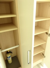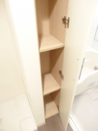 洗濯機置場の右となりには細い収納がつくられています。