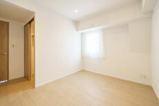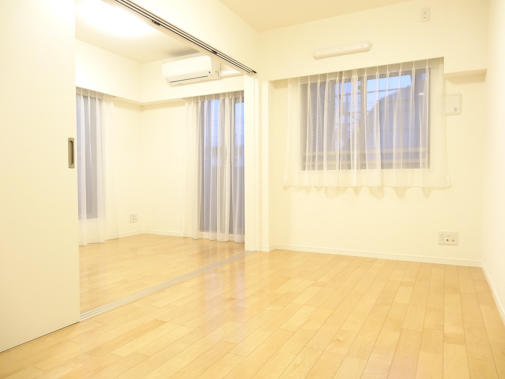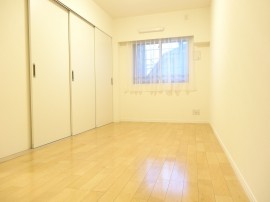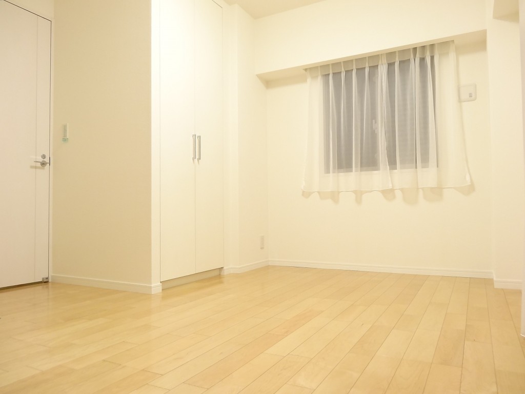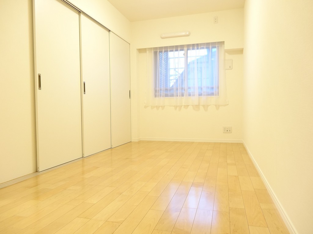 西向きの窓が付いたお部屋です。入口には扉の開け閉めによる無駄なスペースが出来ない引き戸を使用。少々凸凹はあるもののベッドルームとしては余裕があると思います。