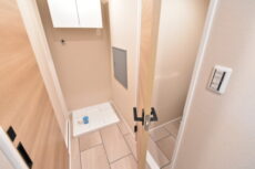 物入れの向かい側に洗濯機置場。扉がついているので使わない時は閉めておけば生活感も隠しておけます。