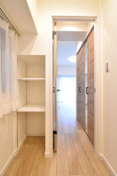 収納にクローゼットと収納棚がつくられています。