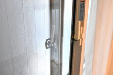 ドア横にはモニター付きインターホンが設置されていて、お部屋の中からでも玄関前の様子を確認することができます。お料理などでチョット手が離せない時にはとても助かりますよね。ドアスコープもありますが向こうからも覗かれているようで苦手です。