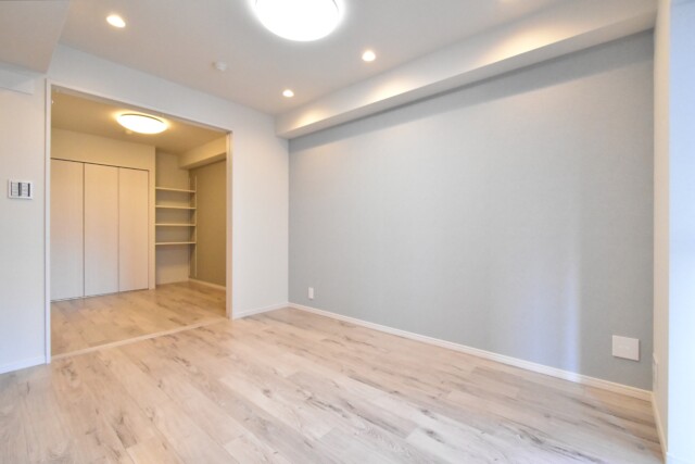こちらは約3.7帖の洋室。窓はありませんが、LDKとの仕切り戸にガラスが入っているので扉を閉めてもLDKからの外光が入るお部屋です。収納はウォークインクローゼット!