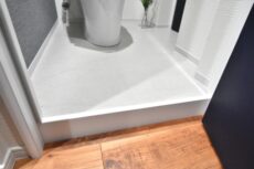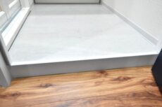玄関側に戻ってまずはトイレから。廊下とトイレの間には床に段差があるので、躓かないように注意してください!