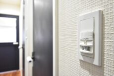 玄関の照明は人感センサー付。一人暮らしで帰宅が遅くなってしまった時も、人感センサーのスイッチを「自動」に合わせておけば、玄関ドアを開けるだけで勝手にスイッチON!!
