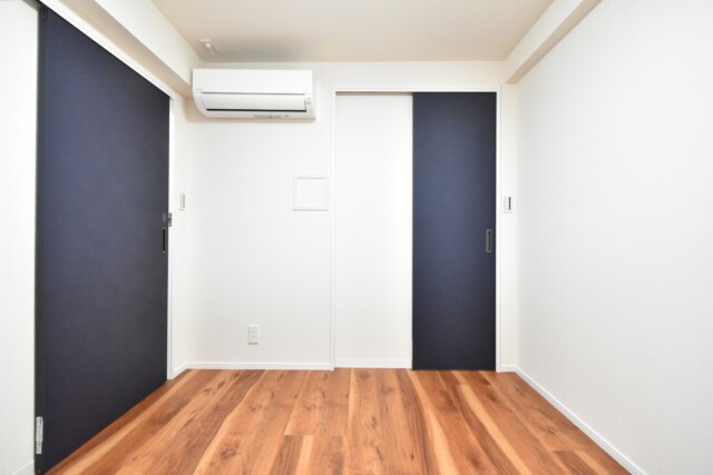 洗面室の向かい側は約4.5帖の洋室。窓はありませんが、エアコンが設置できるよう配管が通してあります。静かな分、グッスリ眠れそうです。