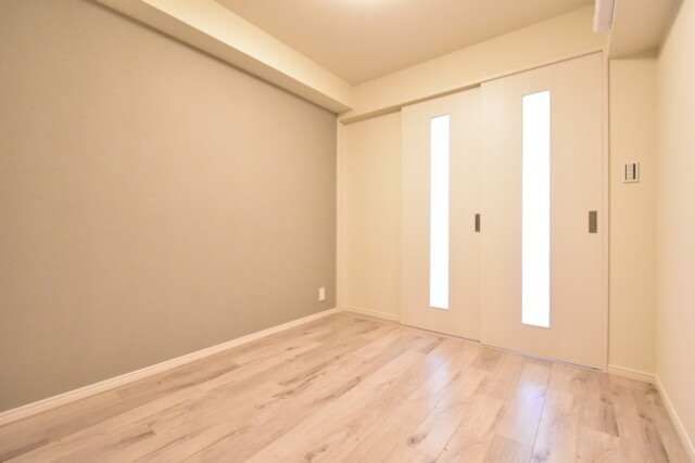 こちらは約4.1畳の洋室です。このお部屋に窓はありませんが、リビングダイニングとの間の引き戸には明かり取りがあるので、扉を閉めていても、外からの光を柔らかく取り入れることができます。