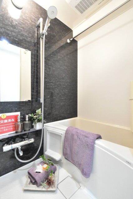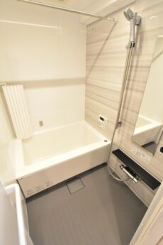バスルームは追い焚き、浴室換気乾燥機能付きと設備充実。