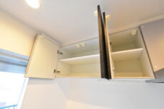 引出し収納も吊戸棚も充実しています。これだけの収納力があれば、十分なほどです。