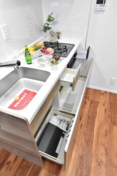 食器洗浄乾燥機付。1日で使う食器を溜めておいて最後に食器洗浄乾燥機で洗えば、節水・節電効果もありますね!
