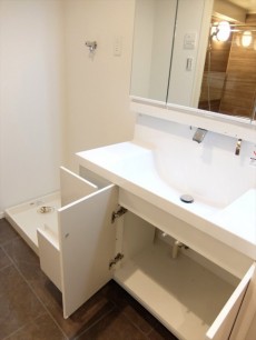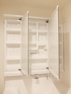鏡の裏は収納になっていますので、散らかりがちな水廻りをきれいに保てます。