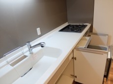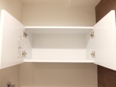 上部には吊戸棚が設置されていますので、洗剤やトイレットペーパーなどの収納に困ることもありません。