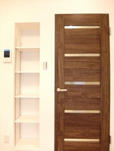 キッチン横には、ちょっとした小物を置ける棚があります。