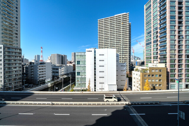 すぐ下には首都高速2号目黒線。車の音はそれなりにしますが、その分開放的のある開けた眺めになっています。ちらっとですが目黒川も見えるので、お部屋から桜が見られるかもしれませんね♪