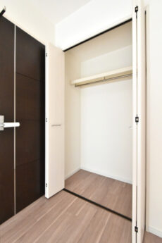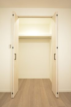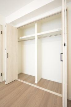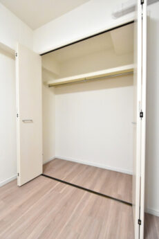 収納は間口が広くて使い易そうなクローゼット。お部屋の幅いっぱいを使っている上、奥行きもあって収納力もなかなかですよ。