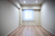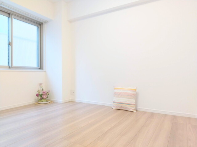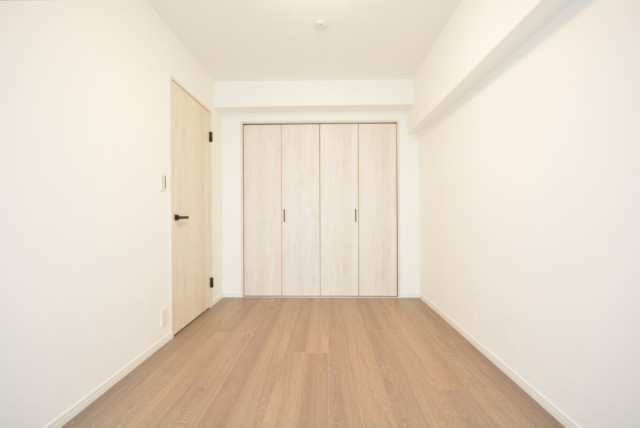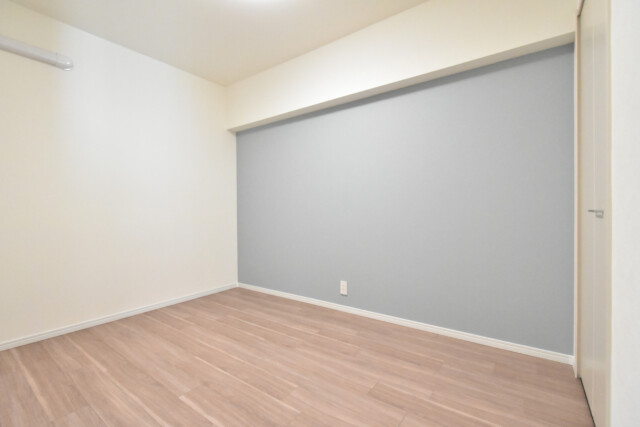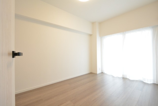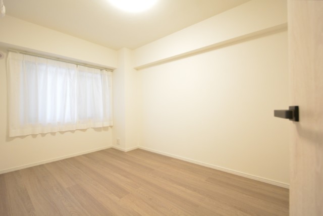 こちらは約6帖の洋室。LDKと同じバルコニーに面した明るいお部屋です。シンプルな色使いでカーテンや家具の色を選びません。お部屋をご自身の好きなイメージに変えていけますよ。