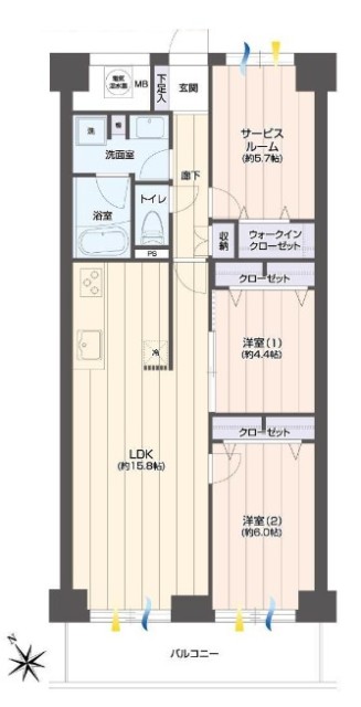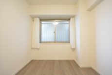 こちらは約5.7帖のサービスルーム。法律上居室と認められないお部屋をサービスルームと呼ぶ事が多いです。お部屋の面積に対しての日が入る窓の面積だとかいろいろあるようですが、実際使えるかどうかとは全く関係ありません。このお部屋も、ベッドルームとして使うのに何の問題もありませんのでご安心ください(^^)