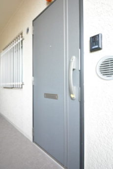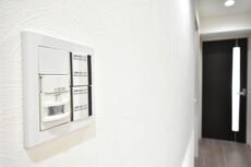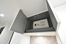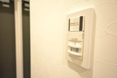 玄関ドア横にはテレビモニター付きインターホンが設置されていて、お部屋に居ながらにして訪問者を確認する事が出来ます。「ハイ」と返事をする前に確認すれば、しつこいセールスを断る手間もありませんね。