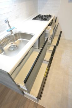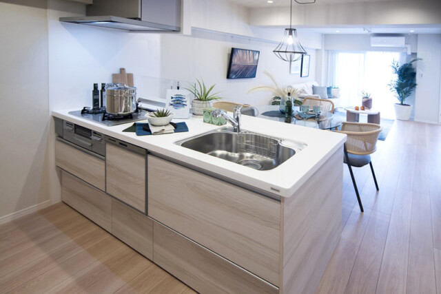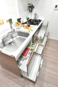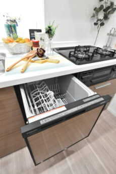 調理台下は引き出しタイプの収納と食洗機。洗い物を食洗機にお任せすれば、食後はみんなでのんびり過ごせそうですね♬