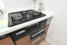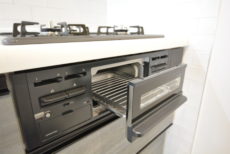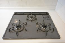 グリルに三口コンロ、調理器具も充実です。日本ではよく見かける片面焼きグリルですが、海外では珍しいらしく欲しがる方も多いとか。