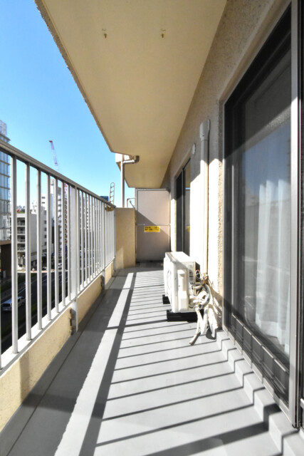 広さは7.99㎡。二部屋にまたがる幅の広いバルコニーです。奥行きもあるのでお洗濯物もゆったりと干せますね。南西向きですので干すならお昼からがチャンスですよ。