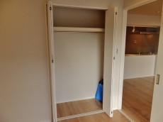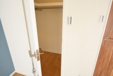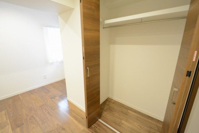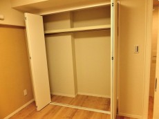 西側の壁は大きなクローゼットになっていますので、大きなものから小さなものまでたっぷり収納できますね♪