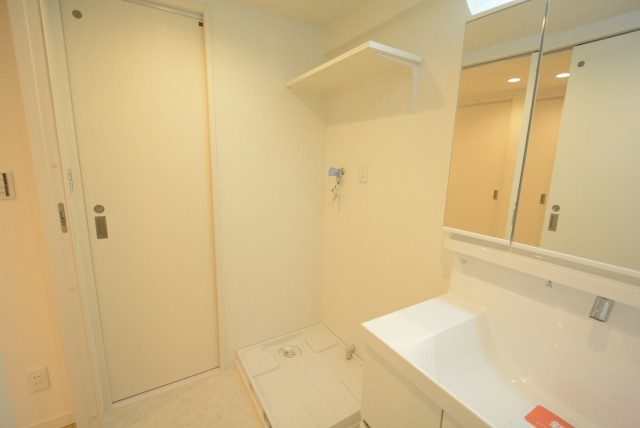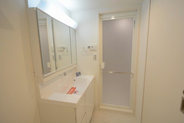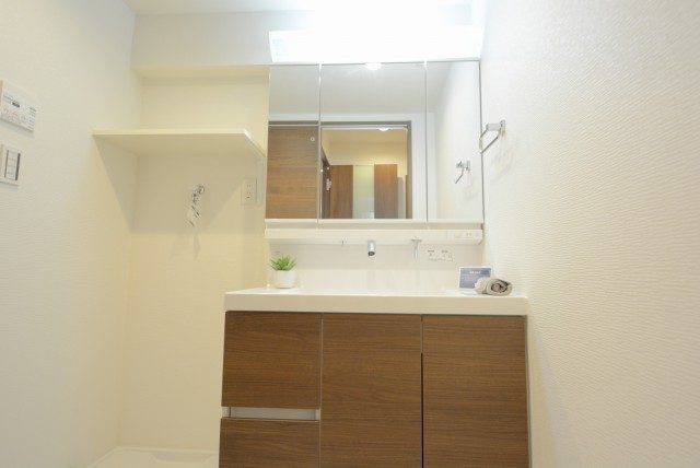 三面鏡付きの洗面台。後ろの寝ぐせもしっかりチェック出来そうですね(笑)