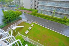 バルコニーの外には、開放的で気持ちいい眺めが広がっていました。左側には運河が流れていて、たまにモノレールが通ったりしています。広い道路が通ってますが交通量は少なめで、意外と静かでしたよ。時間帯によっても違うかもしれませんので、一度ご自身でご確認をお願いします。