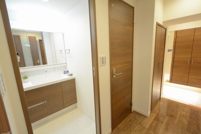 こちらには浴室、洗面台、洗濯機スペース、トイレがまとまっています。