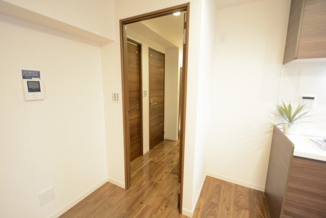 ドア横にはテレビモニター付きインターホンがあり、玄関まで来なくてもお部屋の中から訪問者のチェックが出来ます。ドアスコープの息を潜める感じ、イヤですよね(笑)