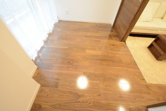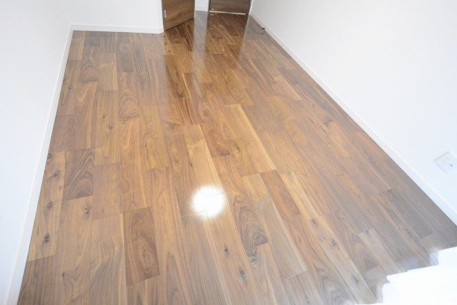 フローリングは天然木使用。同じ模様の繰り返しなんて事もありません。木肌そのものの感触を生かしたナチュラルマット塗装で仕上げられており、足触りの良さと耐久性を合わせ持っているそうです。