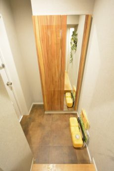 カウンターになっているので、カギなどの小物を整理する小さな棚や、お気に入りのお花を飾ったりすれば、玄関がスッキリ華やかになりそうですね☆